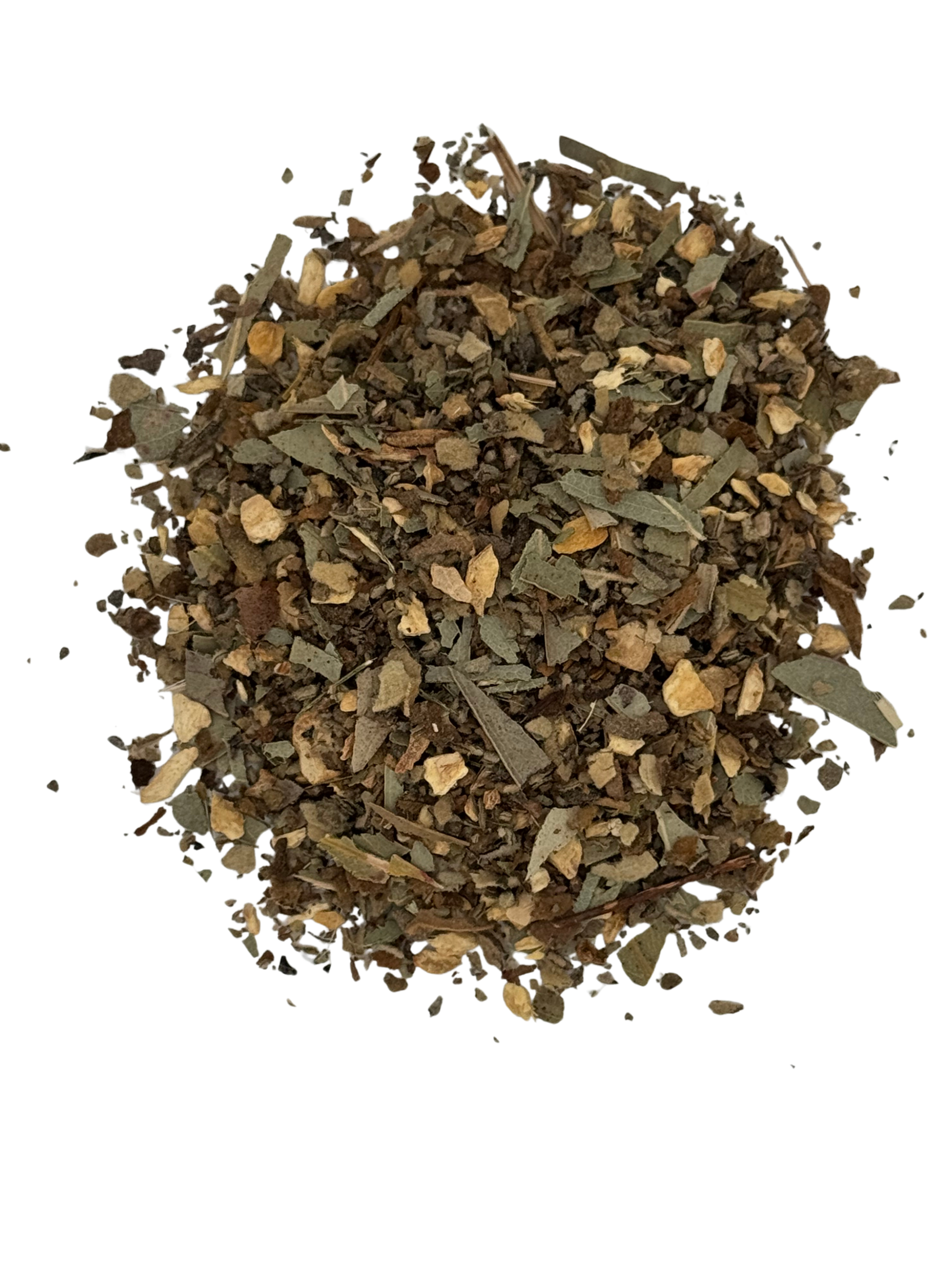 Refreshing and gently herbal with subtle warming spice. Eucalyptus brings a light, cooling aroma, mullein offers a soft earthy base, and ginger adds a smooth, warming finish. Clean, comforting, and easy to sip daily.